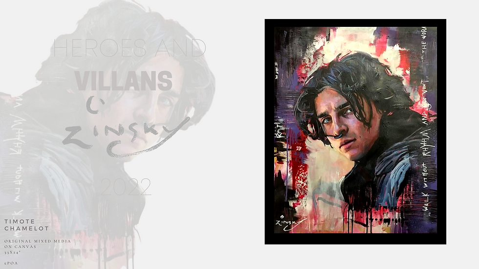Zinsky’s distinctive portraits capture the strong graphical mature of his subjects in a way that sets his work apart from that of other artists. We live in this day and age of the icon and being in such great demand, he brings something vibrant and captivating to this hugely popular genre. The sheer confidence and effortless talents he demonstrates within his compositions combines with the speed and spontaneity with which he works, demonstrating a raw talent that is completely natural.